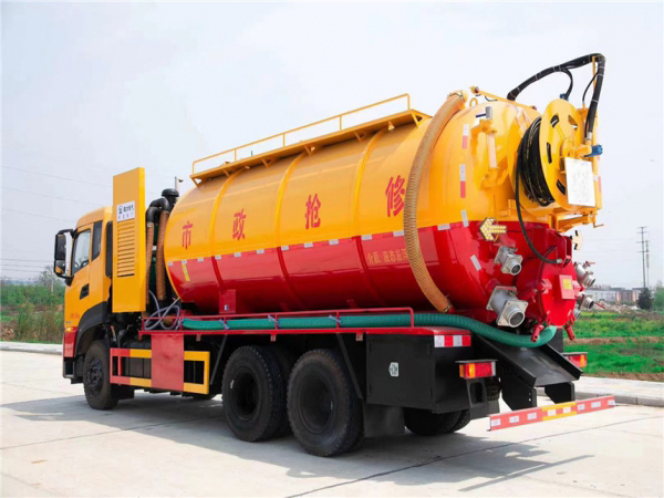 4:后封頭可旋轉齒輪自動液壓絞盤,標配通徑22高壓管60米,耐壓22mpa,后封頭下部開600mm內通徑液壓排污口1個,后蓋左下6寸排污閥1個,后蓋右下4寸排氣閥1個,4寸吸污閥1個,副發進氣管用125mm,不銹鋼水箱做0.8方,1個工具箱《盡量做大》,防溢流裝置,后尾部裝雙箭頭燈,清水罐頂部裝排氣閥1個,清水罐底部裝4寸排水閥1個,出水管在清水罐里面裝75mm閥門,出水管用89mm管。