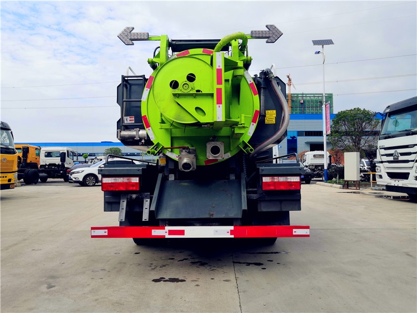 吸污部分:3.8方污罐,罐體5mmQ235優質碳鋼,配淄博SK-9水循環泵,8米吸污管一根,進氣管加過濾網,防溢閥加高,后蓋卡扣鎖緊,前視污亮管,后尾部加裝1個力拓牌**mm的球閥均帶出口,罐體帶舉升功能,后門帶液壓開啟。